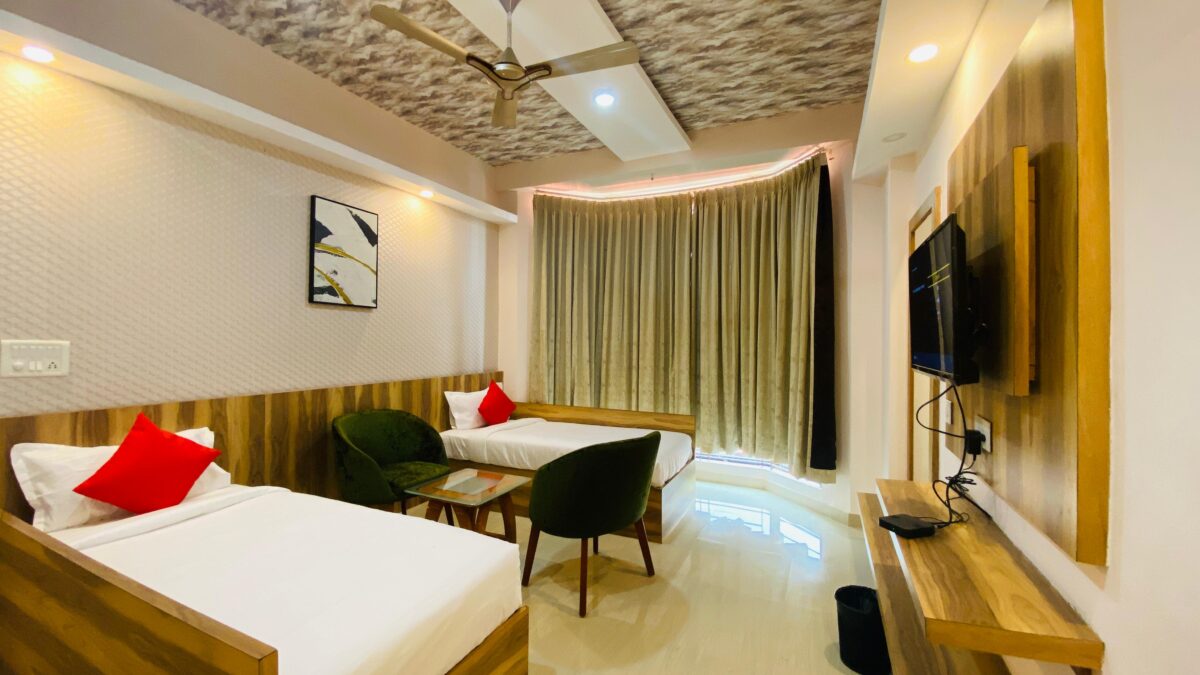 Immerse yourself in luxury at our suite rooms, boasting opulent furnishings and unmatched views of the verdant surroundings. Designed to cater to individual preferences, these suites go beyond mere comfort. Featuring two bedrooms with a king-size bed and twin beds, they also offer amenities like AC, Wi-Fi, TVs, a mini-bar, an electronic safe, and two modern washrooms for a truly rejuvenating stay.