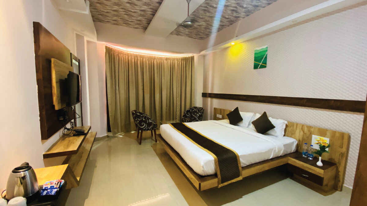 Our well-appointed rooms are furnished with a king-size bed, dressing table, sofa chairs, cupboard, and balcony, alongside LED HD TVs and tea/coffee amenities. The attached bathrooms offer complimentary toiletries and hot/cold water showers. Guests can savor in-room dining, utilize laundry services, and indulge in gourmet experiences at Paradise Restaurant and Pulichar Veg Restaurant. Our 24-hour front desk facilitates transfers to Kukke Subramanya Temple. The hotel also boasts a banquet hall, lawn area, and mountain view lounge for event hosting.